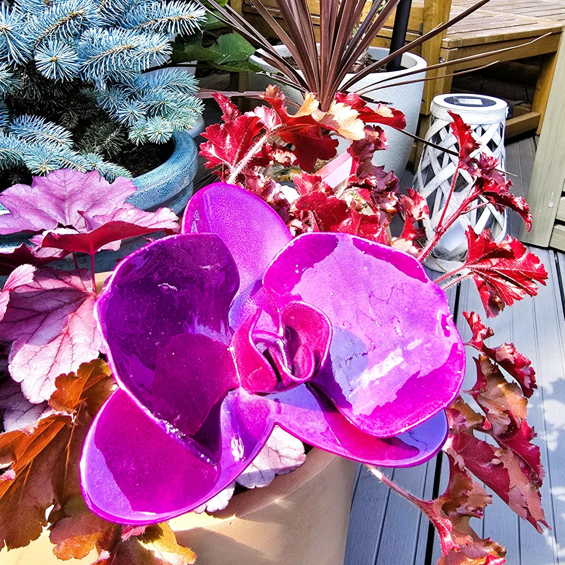 Metal Steel Orchid Outdoor Garden Remembrance Handcrafted - Purple Dazzle