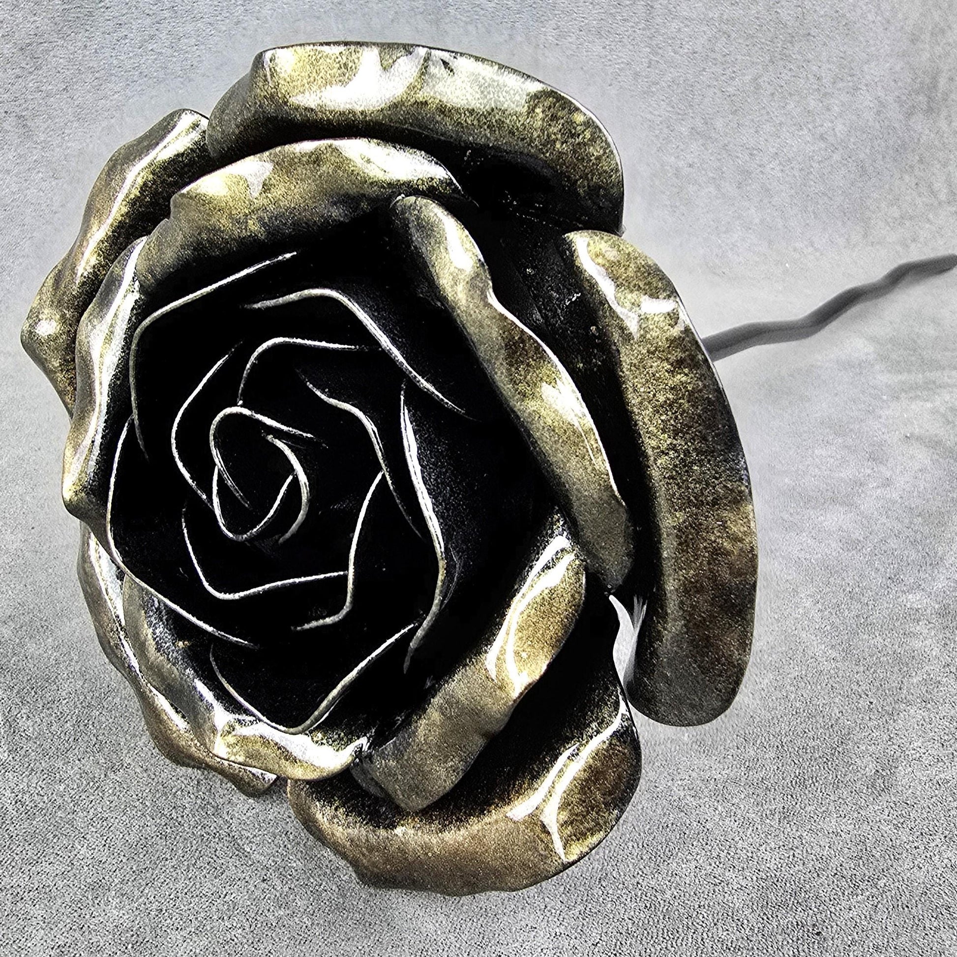 Handcrafted Shadow Mocha Steel Rose: Metal Garden Remembrance Flower