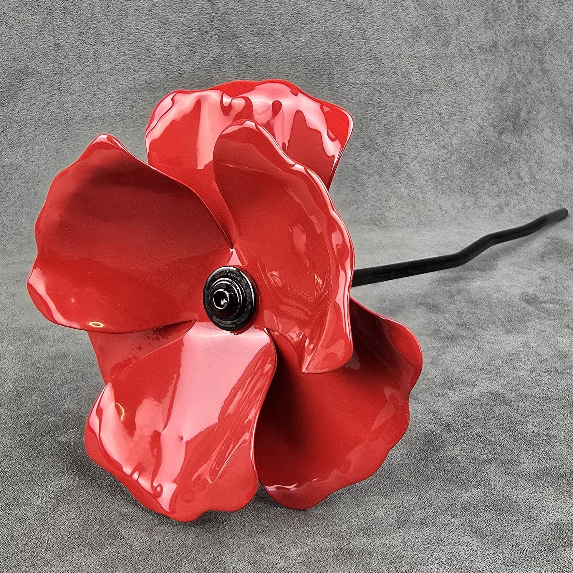 Red Poppy - Metal Steel Poppy Flower Garden Remembrance Day Anniversary Handcrafted Gift